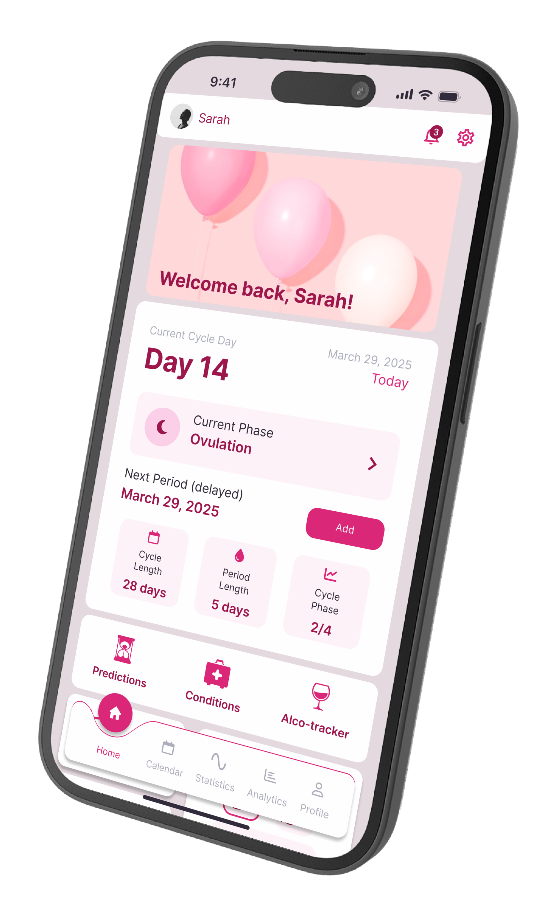 A convenient and stylish app for tracking your menstruation, mood, sleep, and heart rate. Get forecasts and personalized self-care tips.
